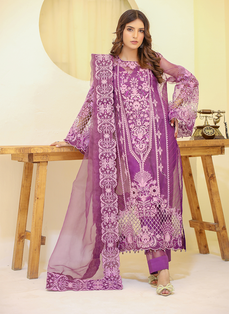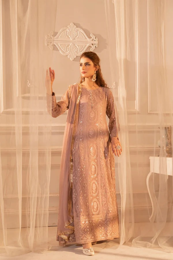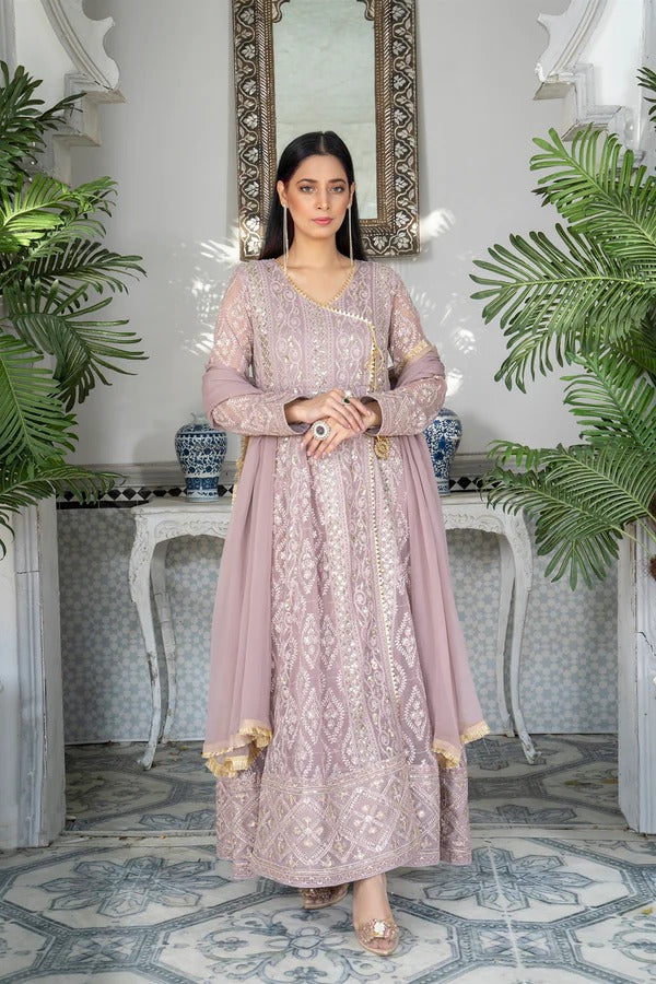 Gender:Â Women Category:Â Clothing Outfit Type:Â Eastern Ready to wear Sub-Category:Â Angrakha Bottom Style:Â Trouser Color Type: Lilac Dupatta Fabrics:Â Chiffon...