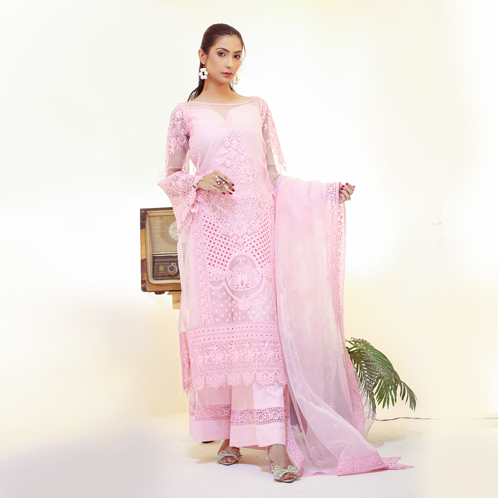 Status :Â EMBROIDERED Fabric : Chiffon Sleeves: Heavy Embroidery sleeves Trouser : Crape & Net Patch...