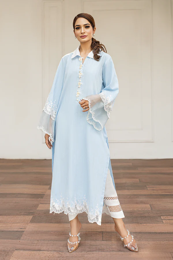 Sasha is an impeccably designed collared long shirt on the canvas of cotton lawn in...