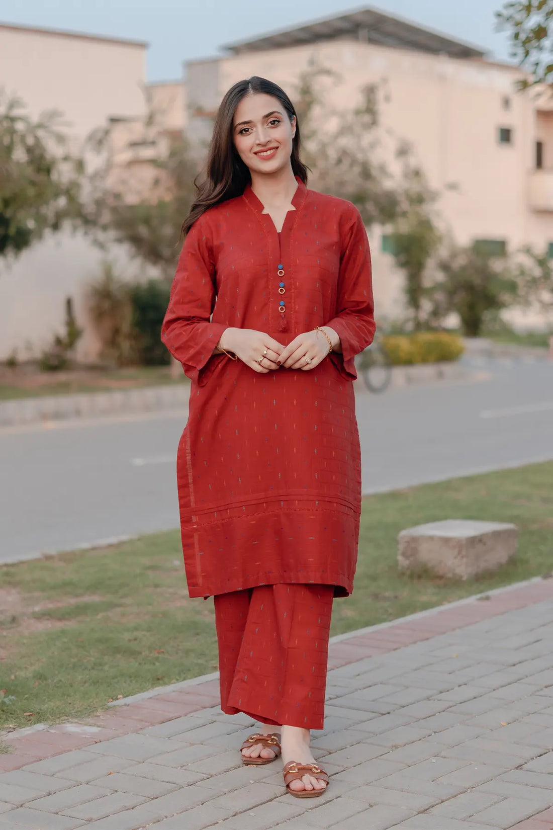 Type: 2 piece Cut: Basic Shirt: Cotton Lawn Jacquard Trouser: Cambric straight trouser included SIZE...