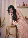 This cotton silk shirt has a canvas of Peach artfully illustrated block printed floral motifs. Adorned with delicate hand made motifs around the neck area