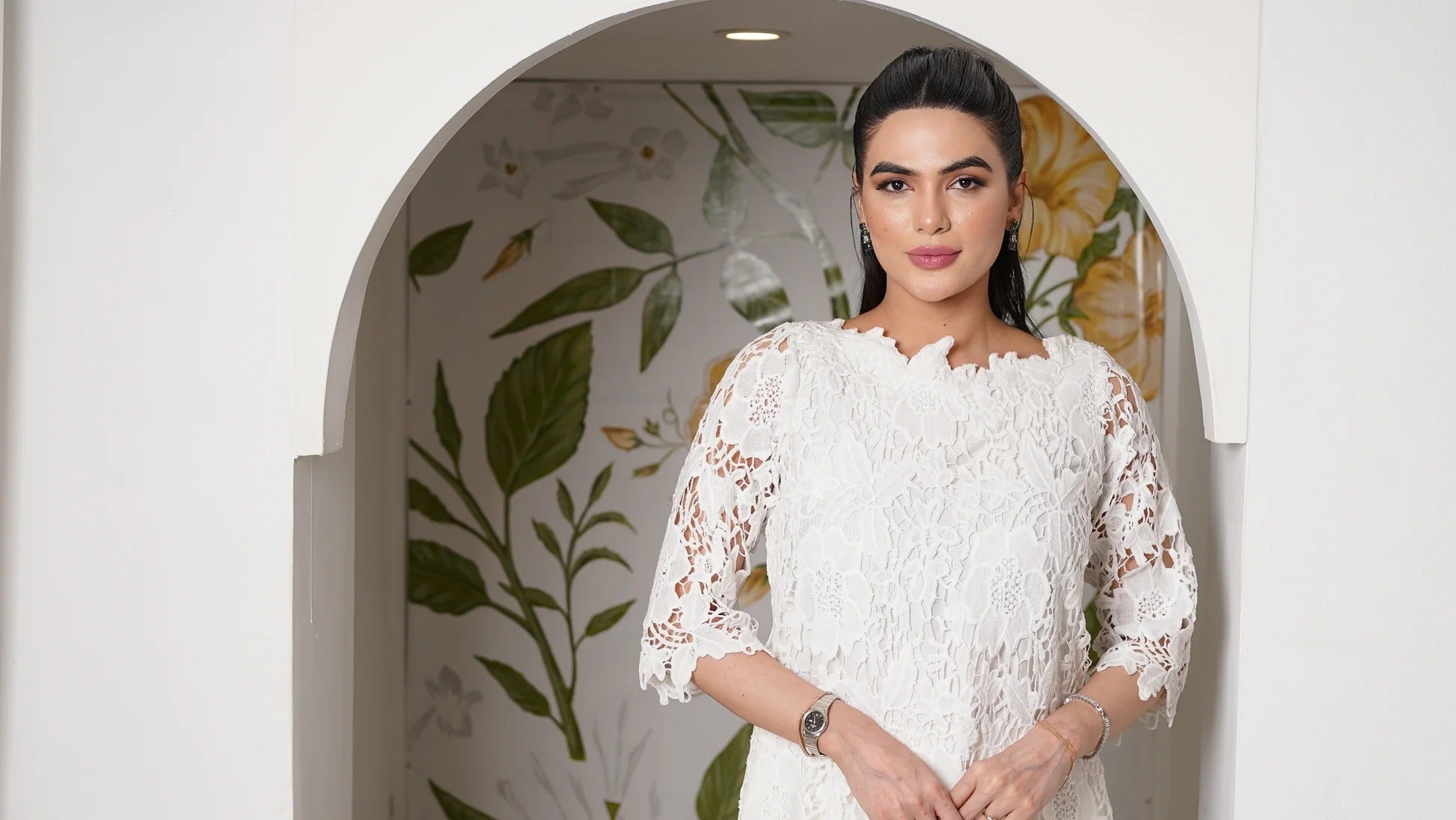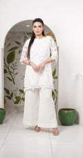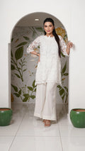 Turn heads in Lia a luxurious white cutwork net co-ord set designed to dazzle at festive events and elegant dinners. Sophisticated, stylish, and stitched to perfection.