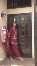 A graceful blend of tradition and style, this set features elegant cutwork and detailed embroidery on the sleeves, trouser, and neckline. It’s beautifully paired with a printed silk dupatta. - Fabric: WASH & WEAR
