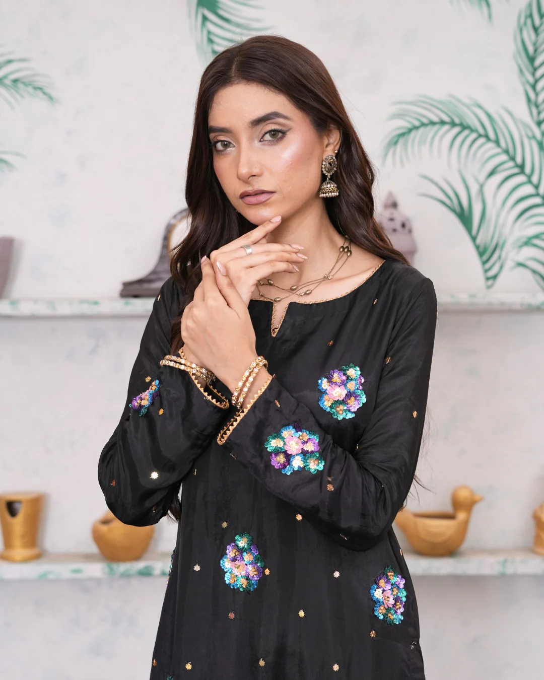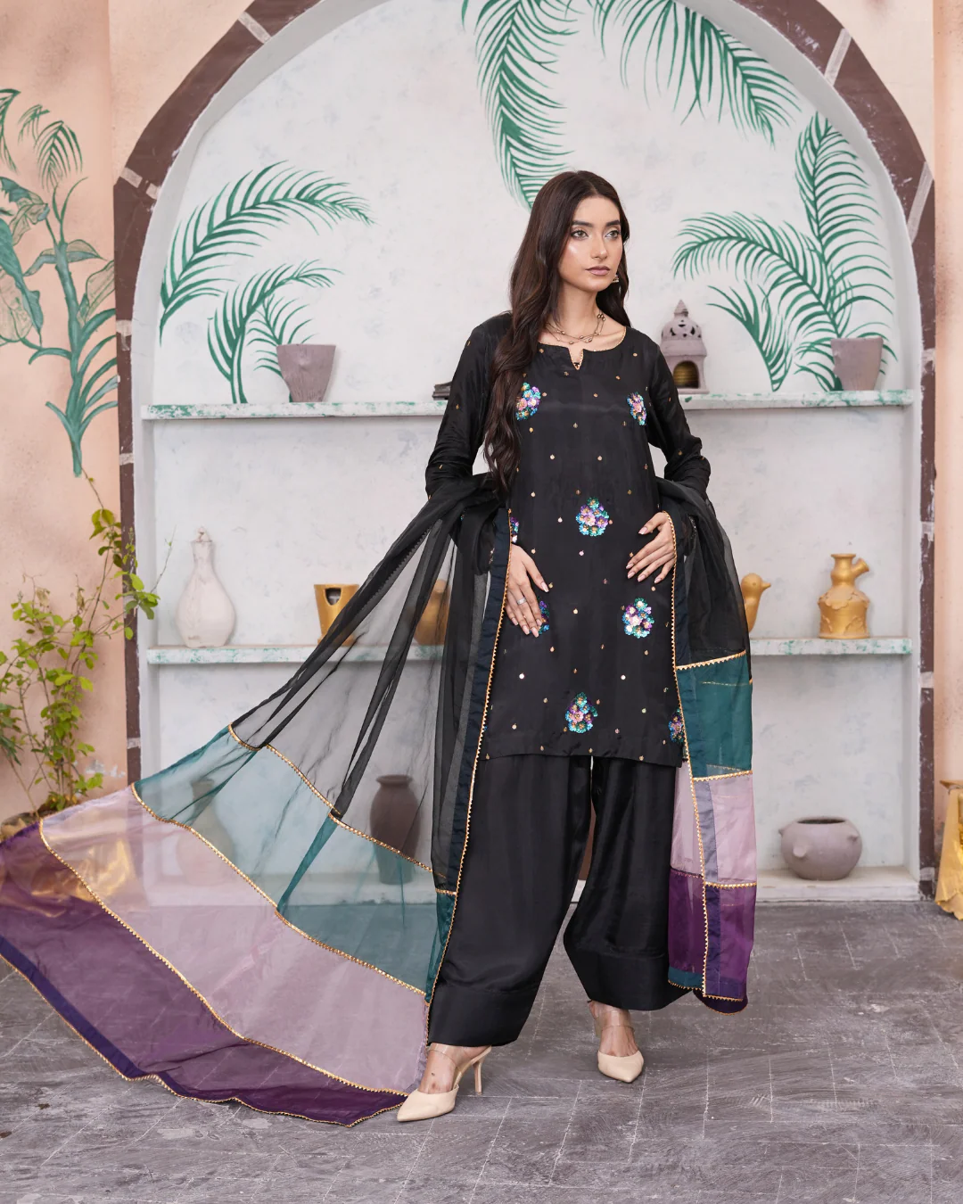 Crafted on premium Russian silk and hand embellished with a dazzling burst of multi colored sequins, Negar is your go to statement outfit this season.