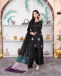 Complete with a matching farshi shalwar and a vibrant organza dupatta, this ready to wear ensemble is all about flawless festive glam!
