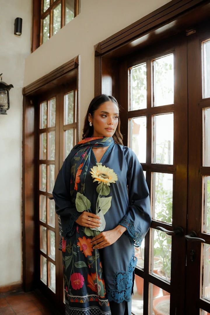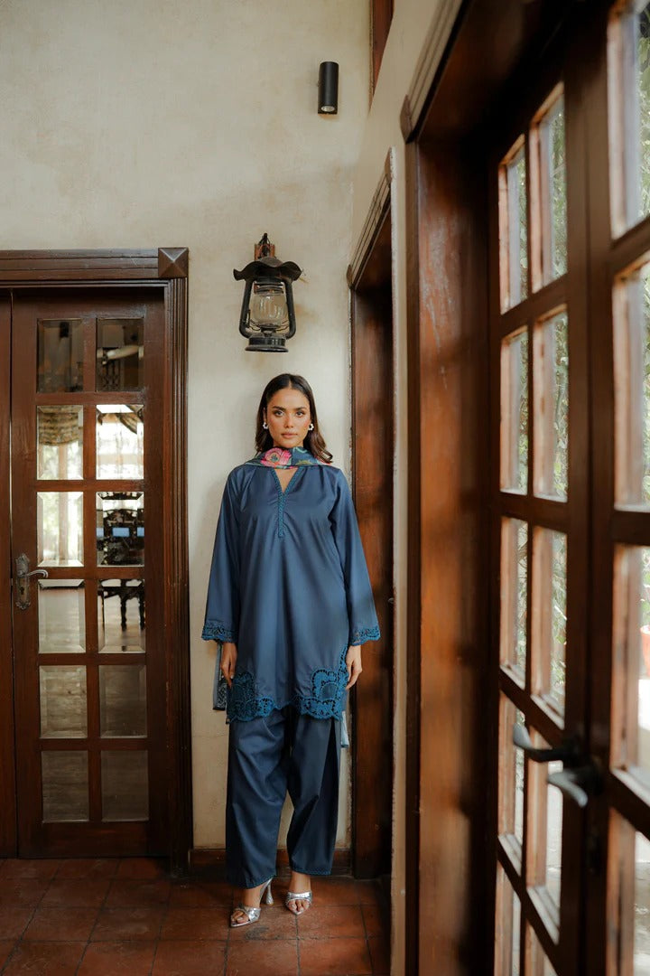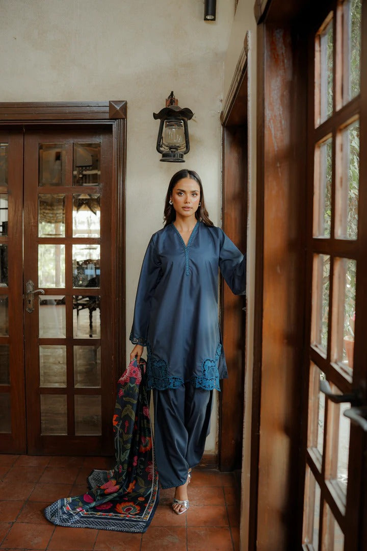 A graceful blend of tradition and style, this set features elegant cutwork and detailed embroidery on the sleeves, trouser, and neckline. It’s beautifully paired with a printed silk dupatta. - Fabric: WASH & WEAR