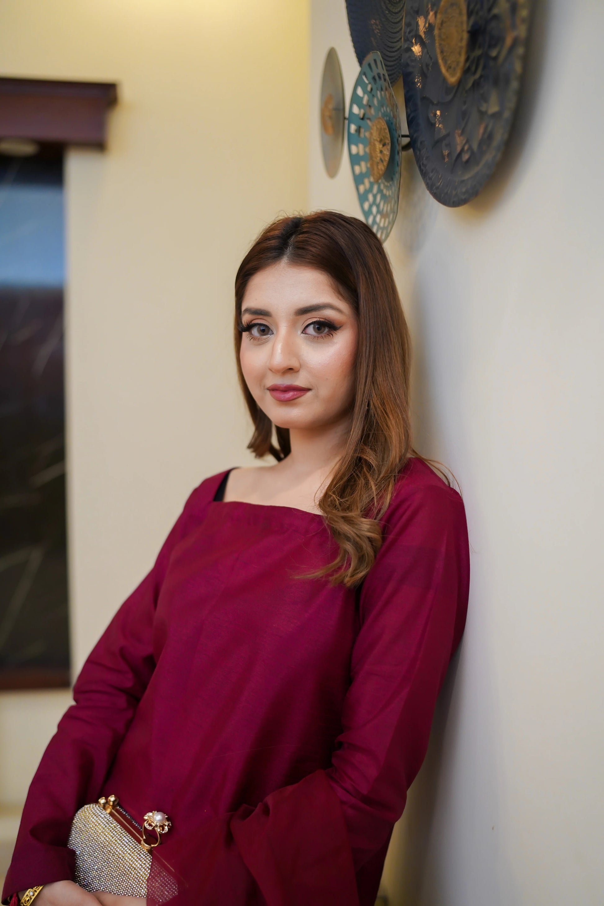 Embrace the richness of autumn with our exquisite maroon farshi shalwar set.